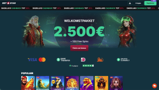 Het leukste van een nieuw account aanmaken in het casino is natuurlijk de welkomstbonus. Kijk hier zitten we natuurlijk allemaal stiekem op te wachten. Zo’n toffe nieuwe bonus waar je als speler mee aan de slag mag gaan. Maar wat heeft Bet4Star nou in petto voor nieuwe spelers? Het gaat om een 225% bonus tot 2.500 euro + 500 gratis spins. Dit is netjes verdeeld over je eerste vier stortingen. Oh ja je moet wel bij elke storting minimaal 30 euro storten om in aanmerking te komen. Maar dit zal voor de meeste spelers gok ik geen probleem zijn. Benieuwd hoe dit uitpakt? Ik heb hem hier voor jullie uitgeschreven:
